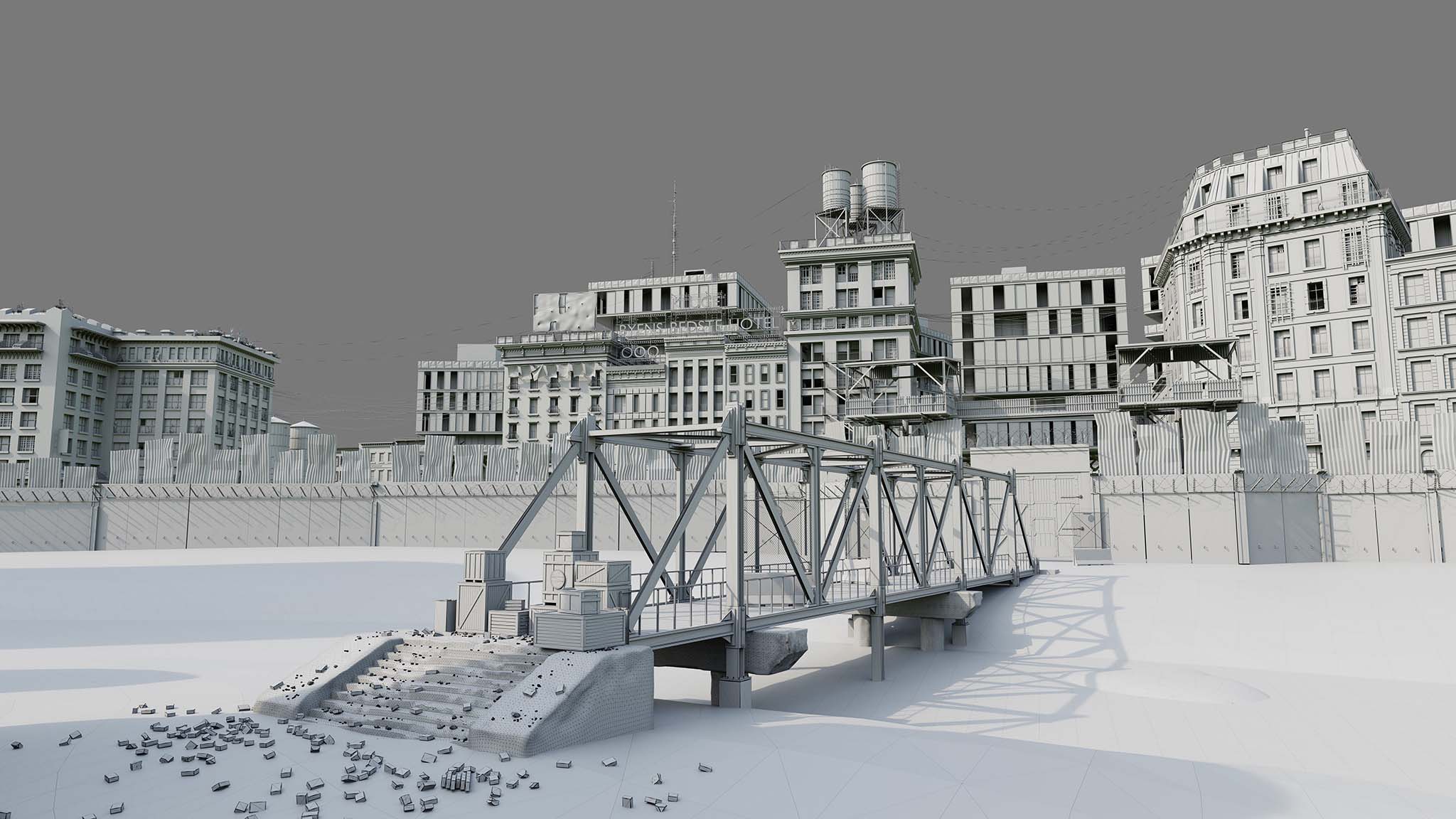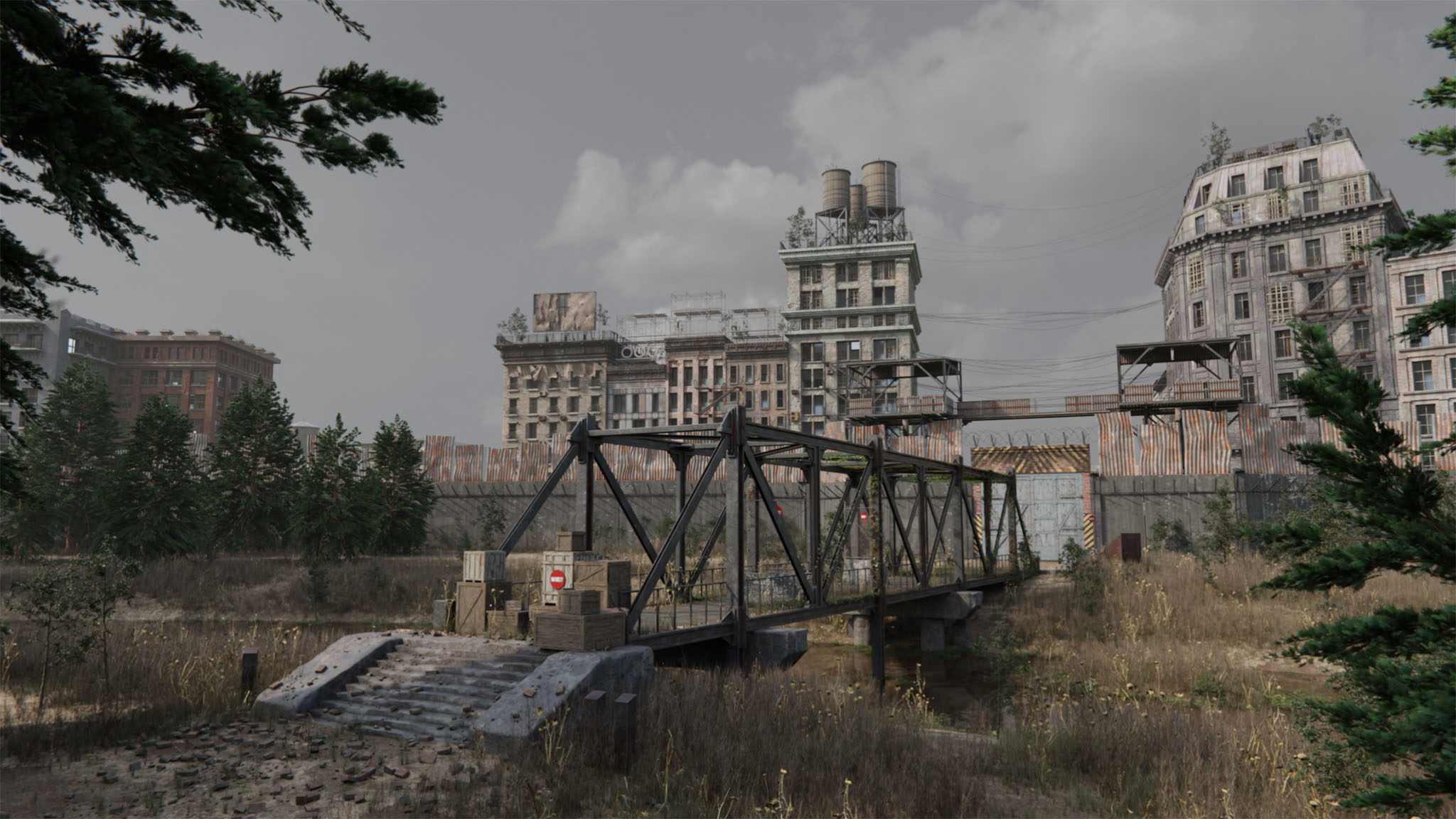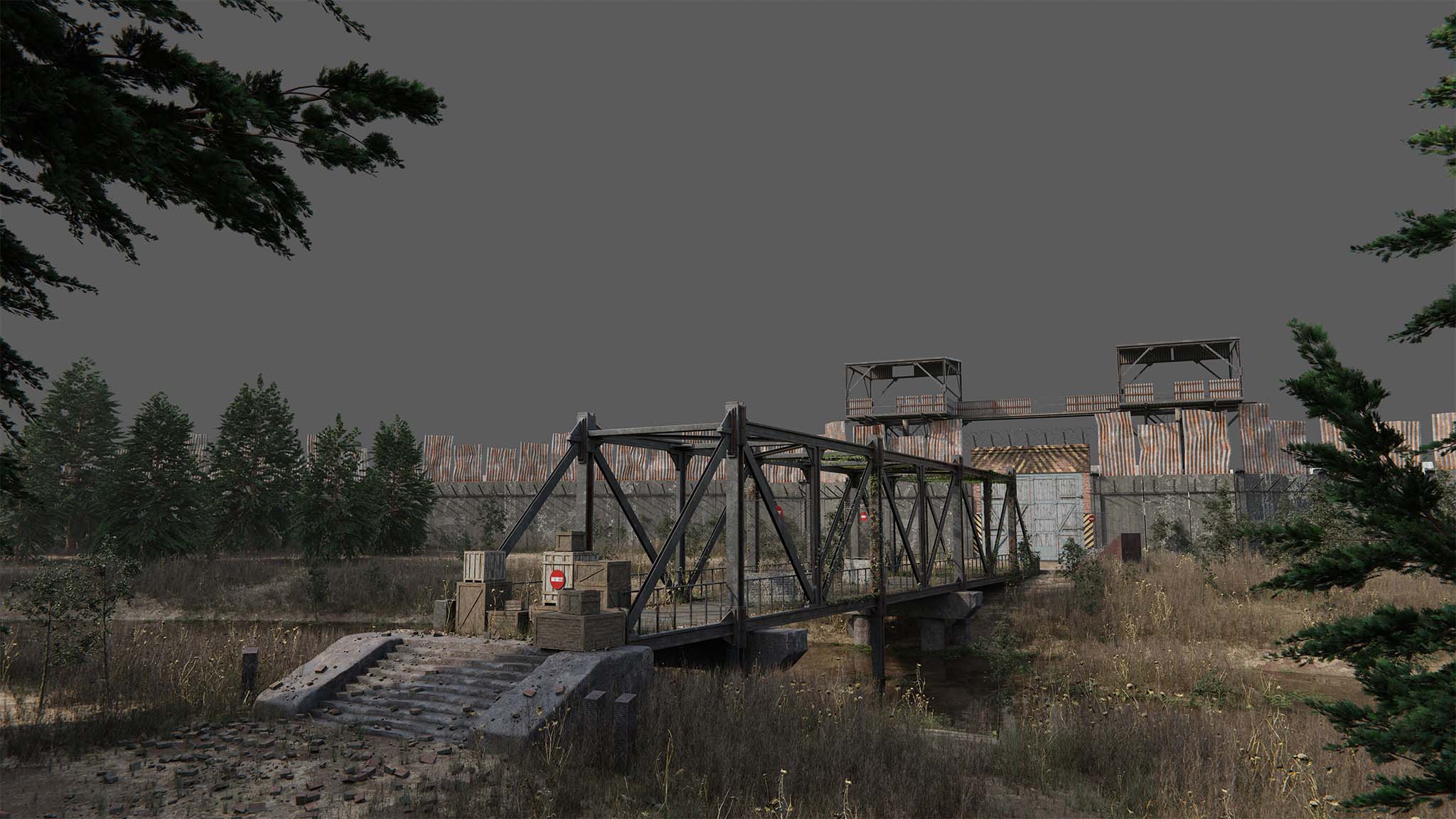 checkpoint 0 marks one of the crossing points into the parasite district, yet no one is allowed to pass without direct approval from the inner council. the bridge, once part of a functional transport system, now stands as a symbol of division and survival. guard towers, rusted barricades, and scattered debris all reinforce the reality that this world has changed