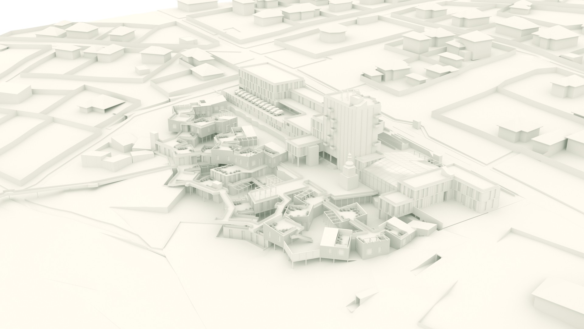 This area acts as a convergence point in the Parasite world — a transitional sector between the secure inner zones and the chaotic outside. Once a thriving industrial and civic hub, it’s now a patchwork of reclaimed buildings, makeshift paths, and overgrown infrastructure. But despite the decay, this place still breathes. Power lines hum. Rooftop gardens struggle to grow. Doors are still locked — just in case.