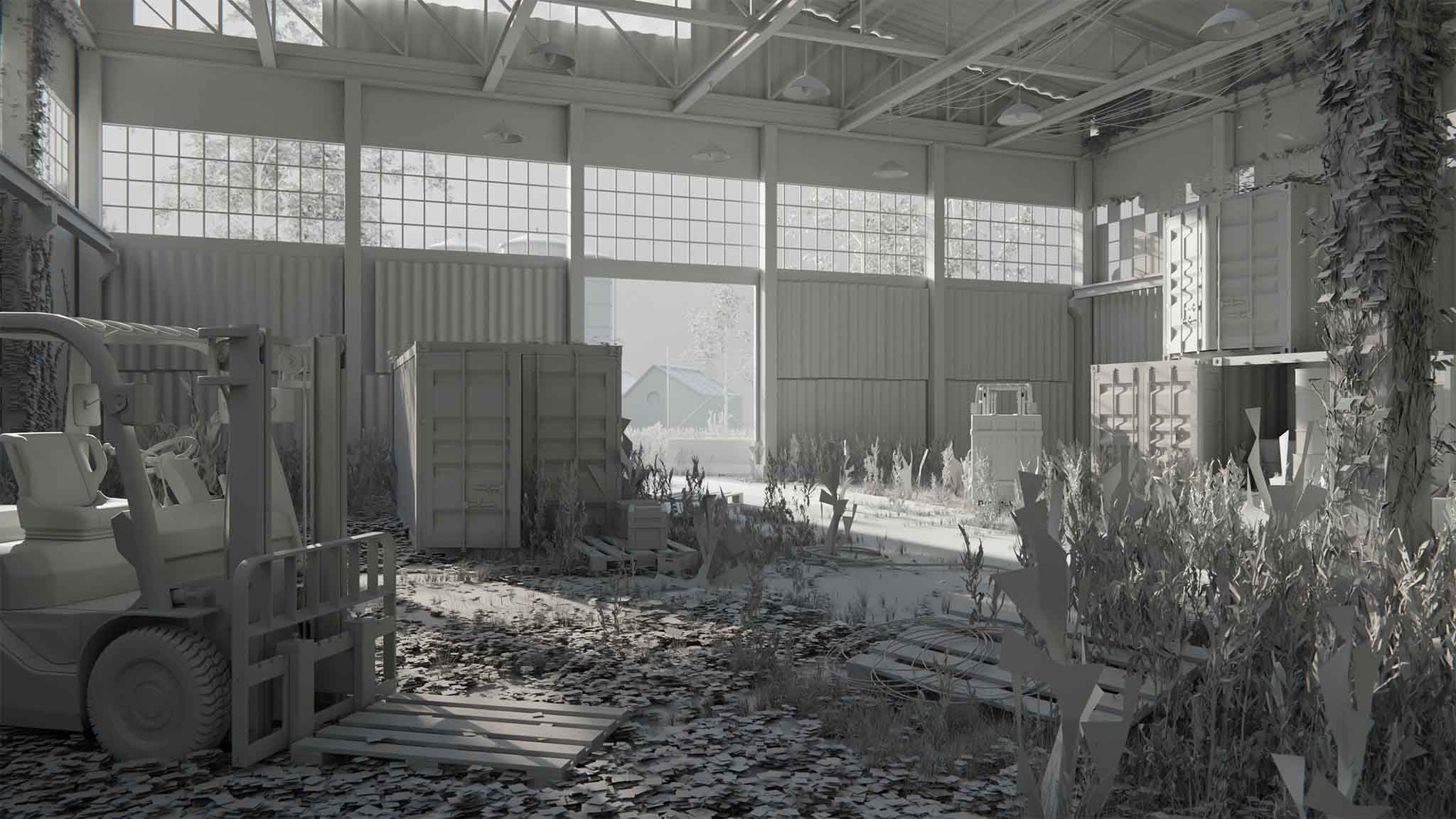 to create interior warehouse environment by adding 3d assets - forklift, automatic forklift and develop interior of factory project