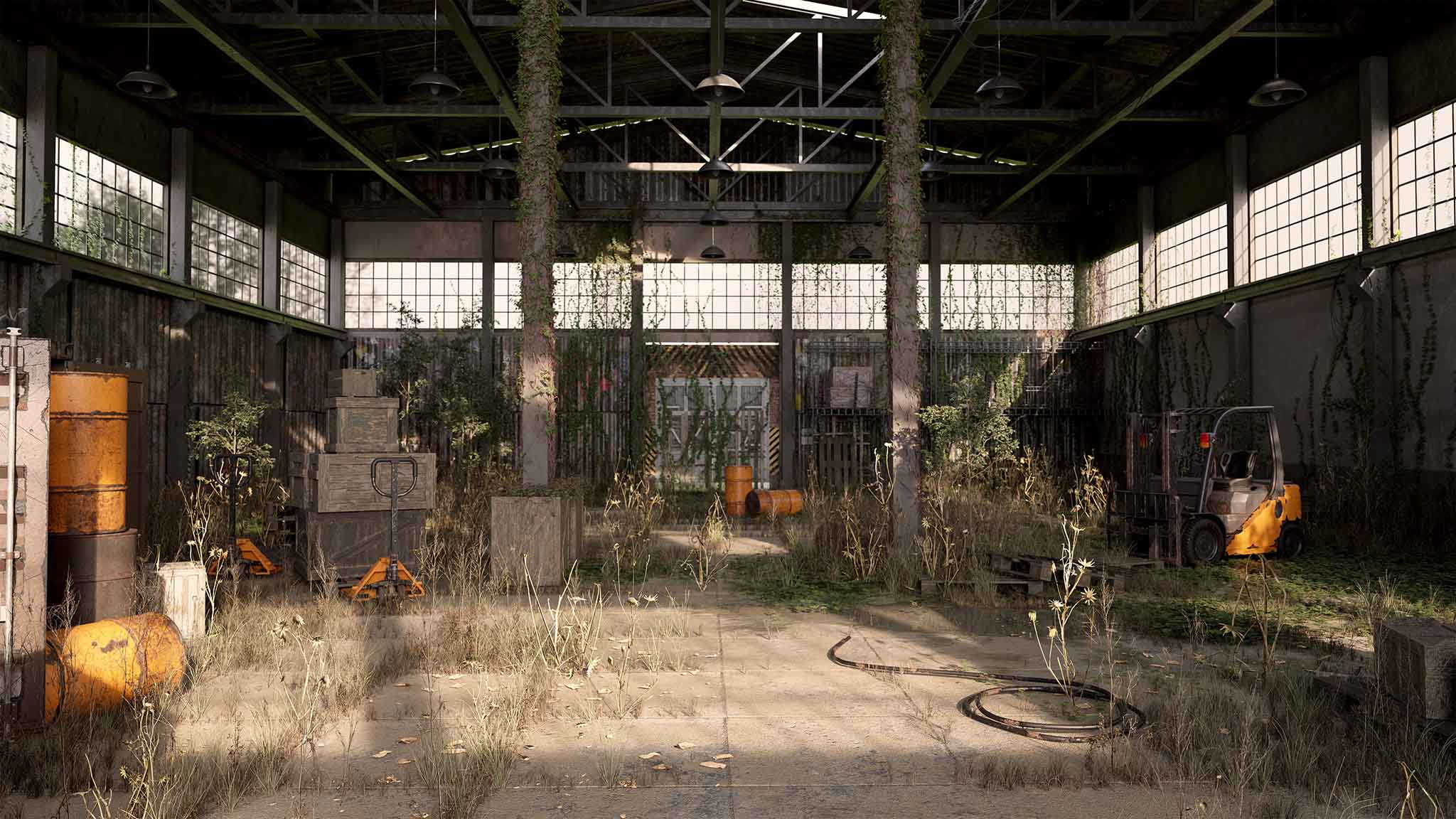 to use real world references and project parasite as a base (factory project). use tillable textures and trim sheets workflows to maintain optimization