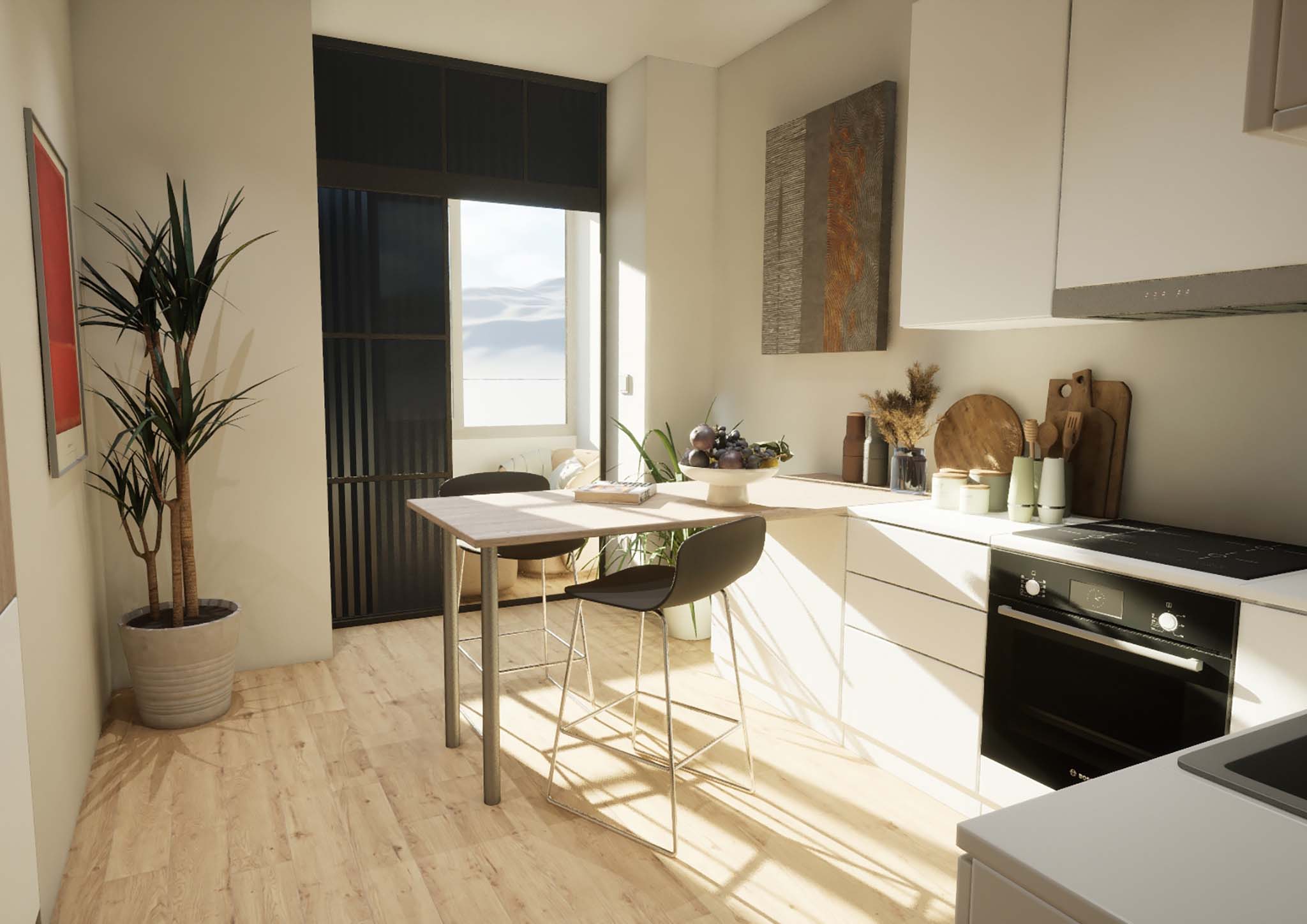 kitchen + balcony + breakfast area.